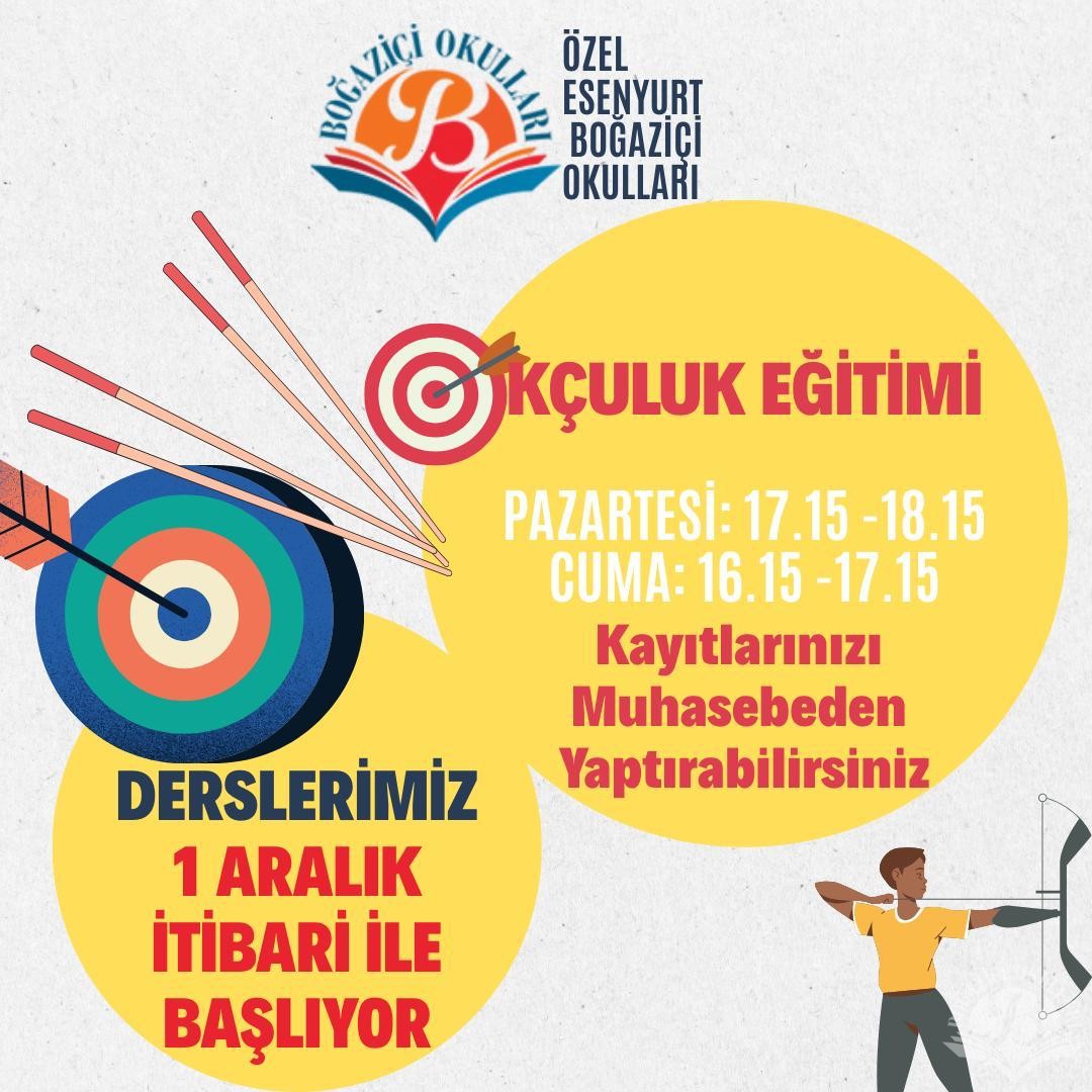 Odaklanma,denge ve güç ...Geleneksel sporlarımızdan okçuluğu profesyonel eğitmen eşliğinde öğrenmek için tüm öğrencilerinizi aramızda görmek isteriz.